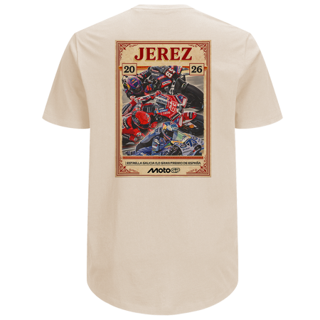 Camiseta del Gran Premio de Jerez, España, (ESTRELLA GALICIA 0,0 GRAND PRIX OF SPAIN), Circuito de Jerez Angel Nieto. Diseño en la parte delantera y trasera.